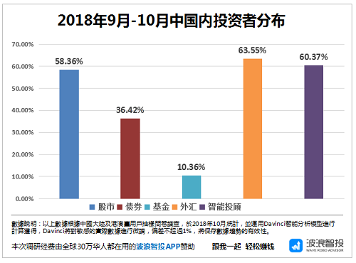 数据显示,同时投资于两种以及同时投资于三种以上的占比比较多,说明对于资金的分散投资的想法越来越深入投资者心中。而较上图所显示,股票、外汇和智能投顾已成为国内投资者最心仪的三大选择。