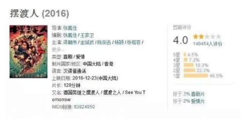 此前,2016年阿里影业首部全权主控的电影项目《摆渡人》上映时,一样遭遇失利,电影耗费4亿投资,票房却只有4.82亿,豆瓣评分只有4.0分。