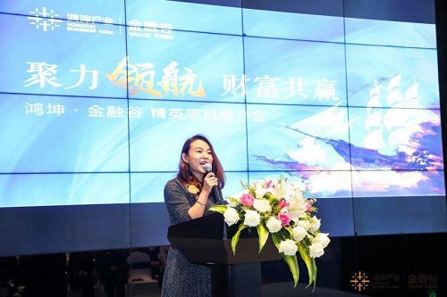 大会伊始,鸿坤·金融谷营销负责人马霞作为项目方代表率先发表了致辞,她介绍,鸿坤金融谷择址于北京大兴,地处新国门价值核心区,是北京首屈一指的景观生态与产业生态相结合的双生态智能商务园区,园区以金融+产业为战略驱动,着力打造创新金融基地、文化创意新引擎、信息科技新高地、科技服务新平台为一体的高端现代服务产业集群。园区一直在各方的密切关注中快速成长,今天借此机会跟渠道精英们建立一个合作的平台,也希望后期借助这个平台实现共同成长,实现共赢。