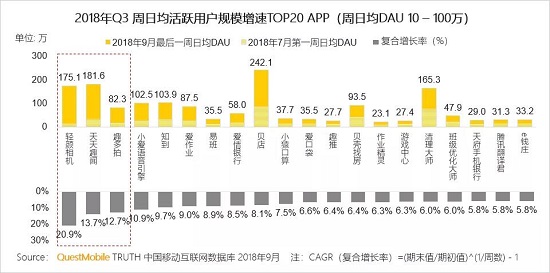 2.6 周日均DAU 10-100万TOP增速榜:抓住网红经济的轻颜相机成绩亮眼