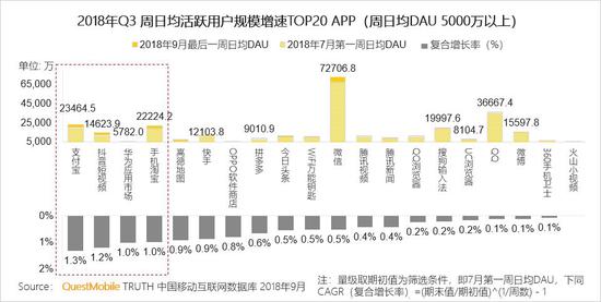 2.2 周日均DAU 5000万以上TOP增速榜:第三方支付双寡头竞争激烈,抖音短视频和手机淘宝仍保持增长态势