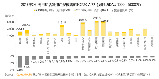 2.3 周日均DAU 1000-5000万TOP增速榜:开学季带动K12 App作业帮用户明显增长,趣头条增速迅猛