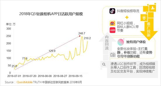 3.2 “网红经济”+产品创新+头条系强势导流,轻颜相机在Q3实现强势增长