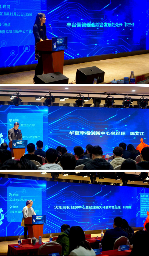 在上午的开营仪式中,活动邀请到中国青年创业就业基金会副秘书长吴秉昆、丰台园管委会综合发展处处长韩兰佳、丰台园管委会产业二处处长艾丹、丰台园管委会综合发展处董晨红、中小企业合作发展促进中心企业社会责任工作委员会副秘书长于静、全国工匠大师技艺传承中心主任王志成、中关村智慧城市信息化产业联盟秘书长辛继巍、华夏幸福创新中心总经理魏文江、华夏幸福创新中心产业发展总监董海河、火炬孵化品牌中心总经理兼火种资本总经理叶明霞、火炬孵化华夏联合事业部高级副总经理迟发君等嘉宾以及数十家北京媒体朋友与北京优秀的创业者们共赴盛会。