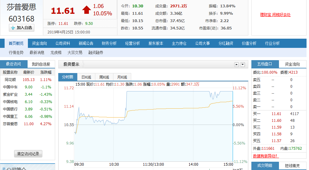 从1月31日的历史最低点5.76元,到今天收报11.61元,在不到三个月的时间内,莎普爱思药业股价已然翻番。特别是在大盘整体横盘调整的情况下,其股价依然表现亮眼。这也表明该公司的市场价值与潜能是远高于预期的。