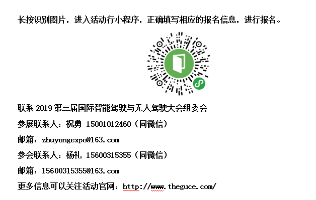 活动期间主办方还将通过多种渠道邀请:汽车主机厂与汽车研究机构等单位;汽车零部件厂商、电子厂商、技术研发等相关单位;智能驾驶与无人驾驶汽车采购单位、公交公司、港口单位、共享出行、物流公司、零售业、环卫公司、机场运营、产业园区、公路运输等相关单位;政府机构、协会、学会、媒体等相关单位现场参观采购。