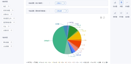沉淀一级市场创投数据产品多年,由投中信息研发打造的CVSource投中数据近日在这方面有了令人耳目一新的动作。该款产品在PC端推出了一项全新功能——“在线制图”,能够帮助用户根据自主设定的条件做大数据宏观分析与数据切片研究,将数据结果实时转化成可供下载的图表,充分满足个性化的数据加工和使用。
