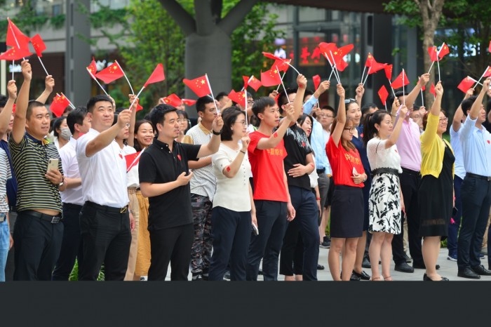 在社会前进的激流中,有一群人,始终走在前沿为我们探路。他们就是科技前沿的引路人——AI企业家们。如今,20余家聚集在华夏幸福创新中心的科技企业工作者们,内心翻涌着浓厚的爱国、报国热情,手中高举五星红旗,走出了科研大厦。他们将报国心化作爱国的主旋律,加入快闪乐团,敲响象征智慧与科技的华诞钟声,为新中国70周年华诞献上了一场科技界的音乐MV。