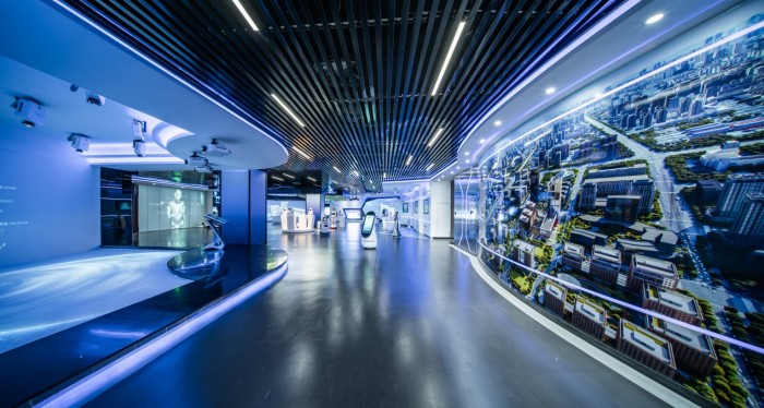 在园区里,大数据流与AI技术飞速交互,协同呈现了一片“创新生态雨林”。产业展厅以弧幕+地幕数字沙盘呈现高新技术成果。科技者们更可以深入其中,在360°VR沉浸式科技里漫游。