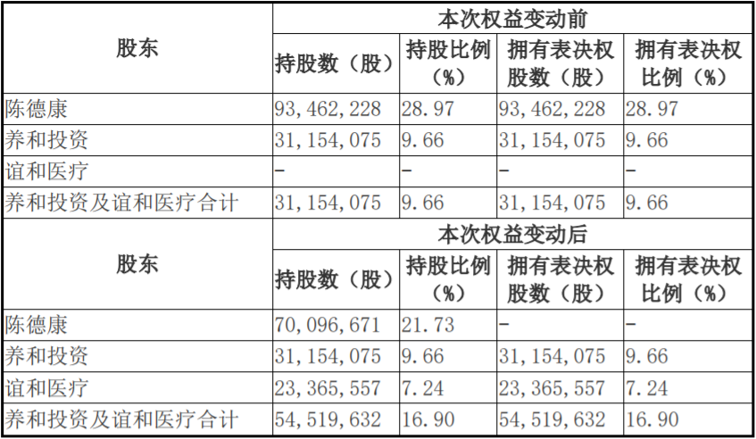 莎普爱思昨天下午发布公告,陈德康拟将其所持公司23,365,557股股份转让予谊和医疗,占公司总股本的7.24%。同时,拟将以不可撤销的方式放弃其所持公司剩余70,096,671股股份之上的表决权,占公司总股本的21.73%。未来根据协议,陈德康还将于2021年将其所持公司17,524,167股股份转让给谊和医疗或其指定的受让方,占公司总股本的5.43%。