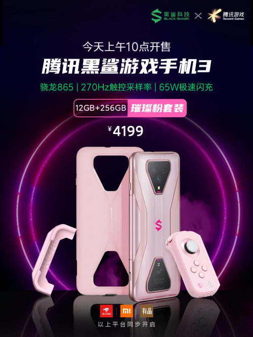 据了解,3月27日当天,黑鲨还为玩家们准备了腾讯黑鲨游戏手机3 Pro的穿越火线手游限量尊享版以及腾讯黑鲨游戏手机3的璀璨粉套装版,包括粉色手机、粉色手柄和粉色保护壳,可爱的粉色不仅适合女生使用,搭配黑鲨超强的游戏软硬实力,也突显了另外一种反差萌。同时,当天购买腾讯黑鲨游戏手机3和腾讯黑鲨游戏手机3 Pro都可以享受京东6期免息的购机福利。通过这两款黑鲨新品手机,玩家们可以率先解锁5G游戏时代的未来游戏体验。