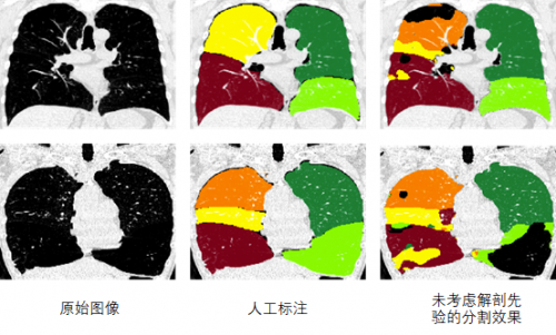 基于深度学习模型的医疗影像分析方法越来越受到重视。在论文中对基于解剖学先验的多分类分割算法效果进行了评估。本文以肺叶分割任务为背景,提出了两个基于解剖学结构的指标用于模型效果评估和数据挑选。一个指标基于5个肺叶的相对位置稳定的先验,另一个指标基于每个肺叶都唯一的先验。如图1所示,违反这些先验知识的分割结果通常都意味着模型在这个样本上的表现效果不好。此外,通过把这些先验信息嵌入到平滑边缘损失函数中,模型的效果和指标的有效性都得到了进一步的提升。