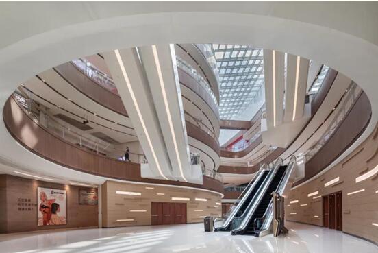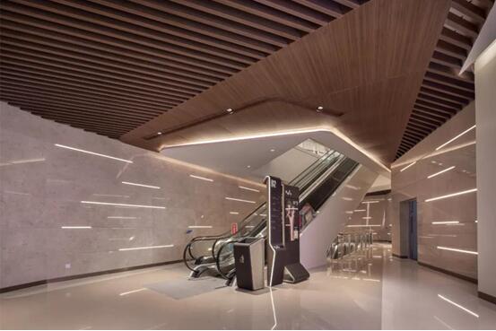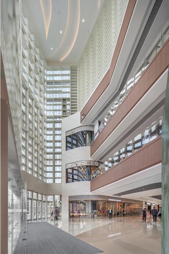 通过大型艺术品产生话题以及凝聚力,另外中空边缘利用主中庭木纹铝板增加空间的一致性。 展示了中国当代关于建筑和自然完美融合的美好设想,也是当今的国际建筑的设计中发展趋势之一,侧证了建筑审美的变化。