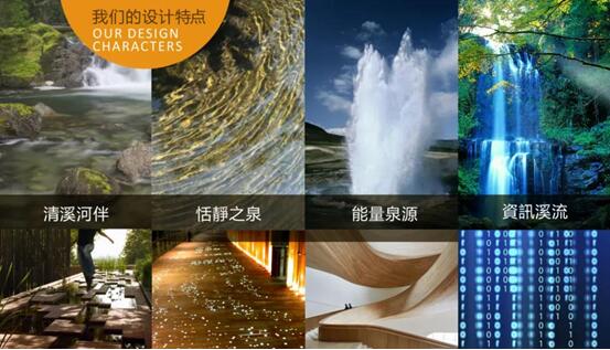 运用“泉”和“水”不同的状态和寓意作为设计灵感