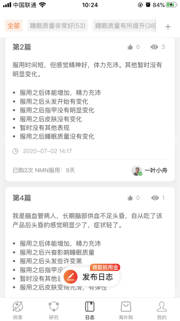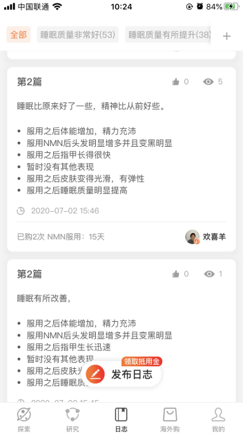 杉宝NMN为了给用户更完备的体验,搭建起专业的用户交流平台,给广大抗衰用户提供最新文献的探索与解读、前沿抗衰研究、用户抗衰日志等生态内容,同时提供实时咨询和售后服务,围绕NMN这样的前沿抗衰研究,形成集深度、态度、温度于一体的社区氛围。