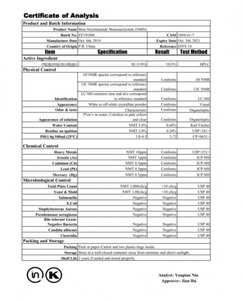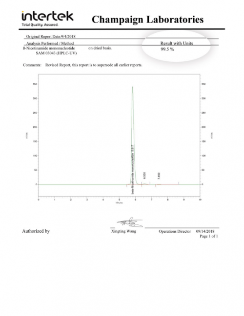 2、杉宝NMN纯度高,经过第三方检测报告显示β-烟酰胺单核苷酸(NMN)纯度可达99.5%,坚决杜绝有效成分含量与产品详情描述严重不符的情况。