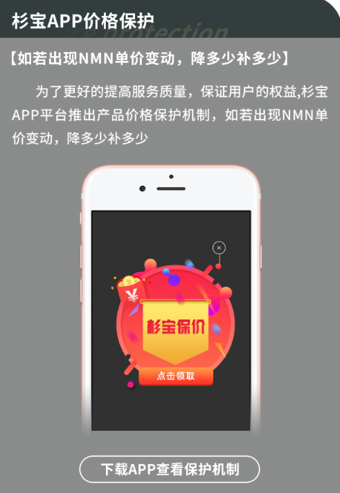 4、杉宝NMN价格合理,不虚高、不哄抬,更有严格的价格保护机制,如有变动,降多少补多少,充分保障消费者权益。