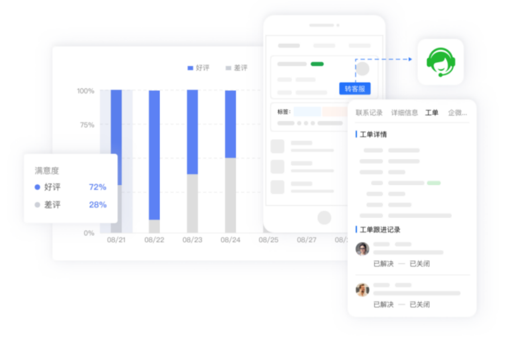 4.一键创建客户工单,支持随时跟进工单流转状态