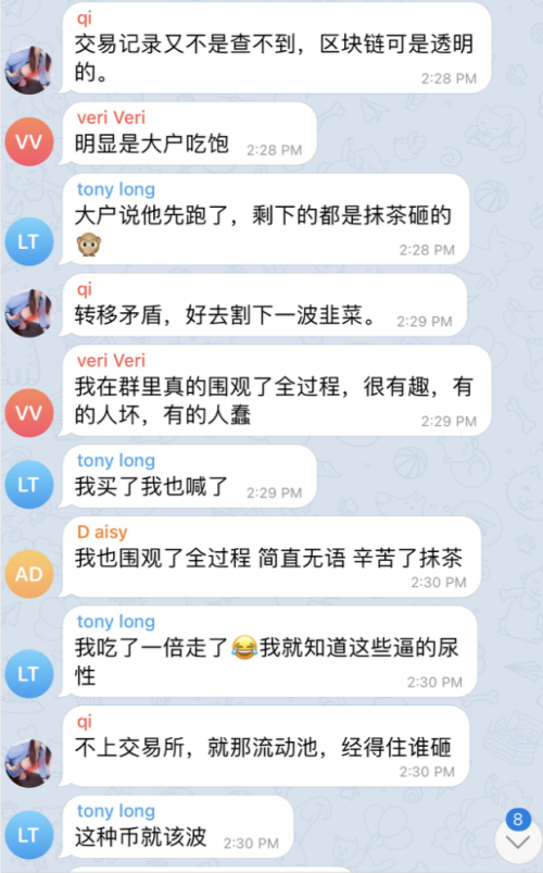 最近,抹茶交易所上线MINIDOGE,紧接着MINIDOGE社区某些不怀好意的大户,有预谋的煽动社区成员,先是对上线进行了集体抵制,之后又组织社区的人伪造抹茶官方群,冒充抹茶CEO身份发布各种不实言论,掩护自己出货,将锅甩给抹茶。最终导致抹茶直接下架MINIDOGE。