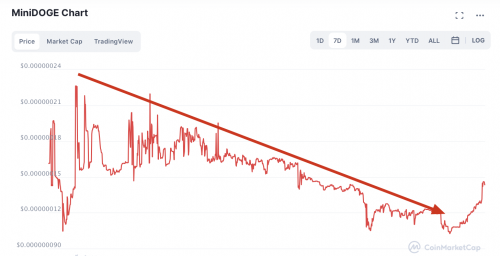 ② 上线后五日,MINIDOGE价格下跌,社区出现“抹茶砸盘”言论。