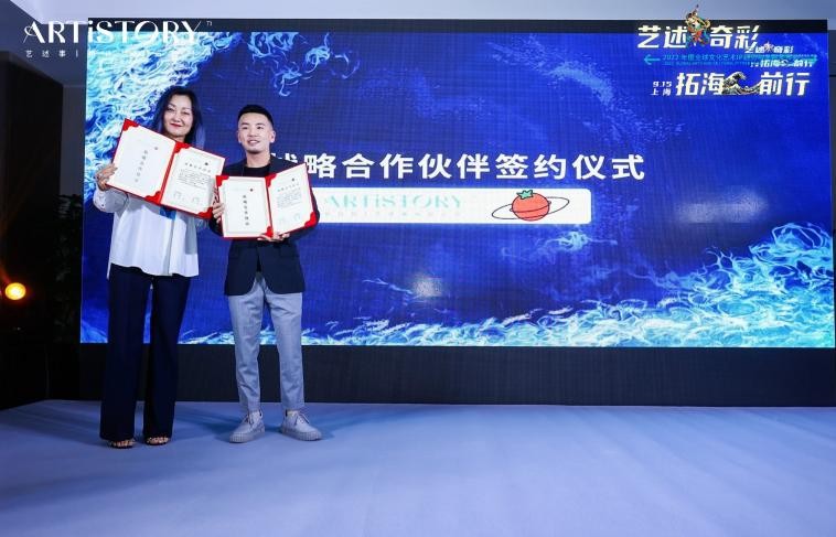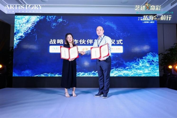 此外,艺述事还公布了两个令人期待的战略合作。首先是新加坡艺述事与国家对外贸易基地(上海)达成战略合作伙伴。韩静代表新加坡艺述事与国家对外贸易基地(上海)任龙总经理发表了对未来合作的期盼,表达将共同推动更多中华优秀文化产品和服务走向世界。作为协助中国品牌出海营销的领军企业,蓝标传媒旗下西红柿互动与新加坡艺述事公布了战略合作。