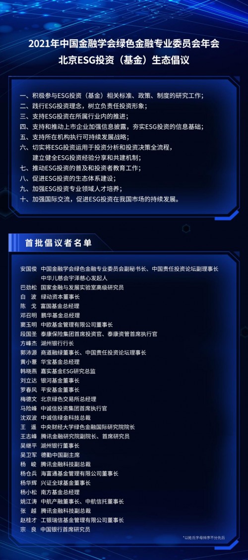 同日,在北京市金融监督管理局的支持下,腾讯金融研究院、腾讯理财通等联合众多机构,共同发布北京ESG投资(基金)生态倡议,进一步推进ESG投资在国内的发展,加速基金行业研发更加丰富的ESG基金和相关投资产品,推动北京市建设全球领先的绿色金融先行示范区,助力我国绿色金融体系健康快速发展。作为本次倡议的发起方,腾讯理财通多位专家加入首批行业倡议者行列,并全面参与了ESG基金评价体系的研究与制定。