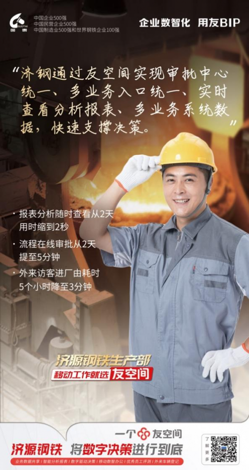 济源钢铁是中国大型钢铁骨干企业,拥有员工8000人,资产总额150亿元。济钢与用友合作已有20年,非常重视信息技术在企业经营管理中的应用以及注重员工体验。在接入友空间之前,济钢也选择过其他移动办公平台进行了测试,但都不够理想,最终还是将目光转向合作多年的用友,结果双方一拍即合。现在友空间不仅帮助济钢实现了审批效率的提升,让员工真正做到少跑路,在其他一些细节处如门禁系统自动放行上,也让管理更省心。