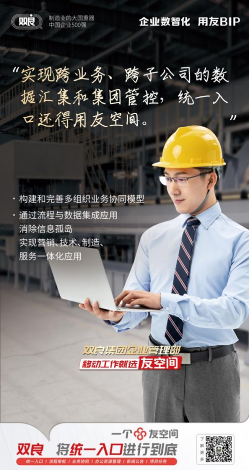 双良集团早在1996年便与用友达成了战略合作,一直将信息化、数字化当做集团发展建设的重点。2016年11月,双良集团成为利用友空间开启移动办公最早的一批客户,到目前几乎实现了所有必须移动办公人员的覆盖。在功能上,友空间帮助双良集团完成ERP、CRM、HR、BQ、PORTAL等众多系统数据的集成打通,一个APP就可以管理所有应用系统,实现企业办公的高效协作,让双良的员工们真正感受到了数字时代的便捷。