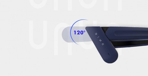 其次,Mu6 Ring的机身重量只有35g,佩戴无压力,使用十分轻盈。耳机前端可以120度向下折叠,佩戴时可以折叠后挂在耳朵上,增加佩戴的牢固性,且运用符合人体工学的中置重心结构设计,以达到机身和头型的稳固贴合,也适应了更多人群的佩戴需求。