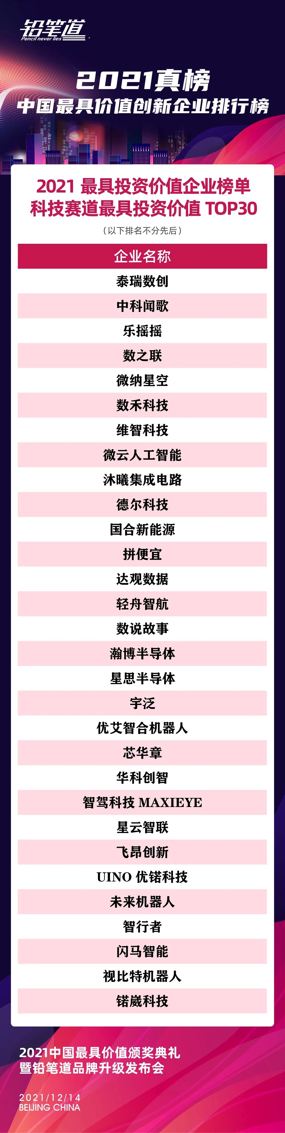 近日,中国第三代创新创业服务平台铅笔道公布了“2021最具投资价值企业榜TOP30”榜单,旨在用最真实客观的评价手段,发现影响时代的创新者。作为领先的技术创新企业,【微云人工智能】凭借核心的技术优势及市场影响力从近千家企业中脱颖而出,成功跻身“2021最具投资价值企业榜TOP30”。