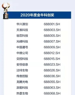 其中,金牛科创奖基于多层次资本市场的建设以及全面注册制的稳步推进而首次设立,参考金牛最具投资价值奖的评选模型,聚焦科创板,甄选出光峰科技、传音控股、天合光能、金山办公等49家科创板公司列入榜单。
