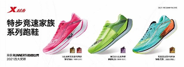 这三款跑鞋是特步于2021年特步321跑步节正式发布的竞速家族碳板跑鞋。160X PRO屡次在实战中力压群雄,2021年曾帮助彭建华、杨绍辉、董国建在徐州马拉松暨奥运会马拉松选拔赛中包揽前三。300X 2.0和160X2.0一经推出就获得了大众及专业跑者的良好反馈,去年12月,160X2.0入选“bilibili Z100”年轻人的百大口碑国货榜单。