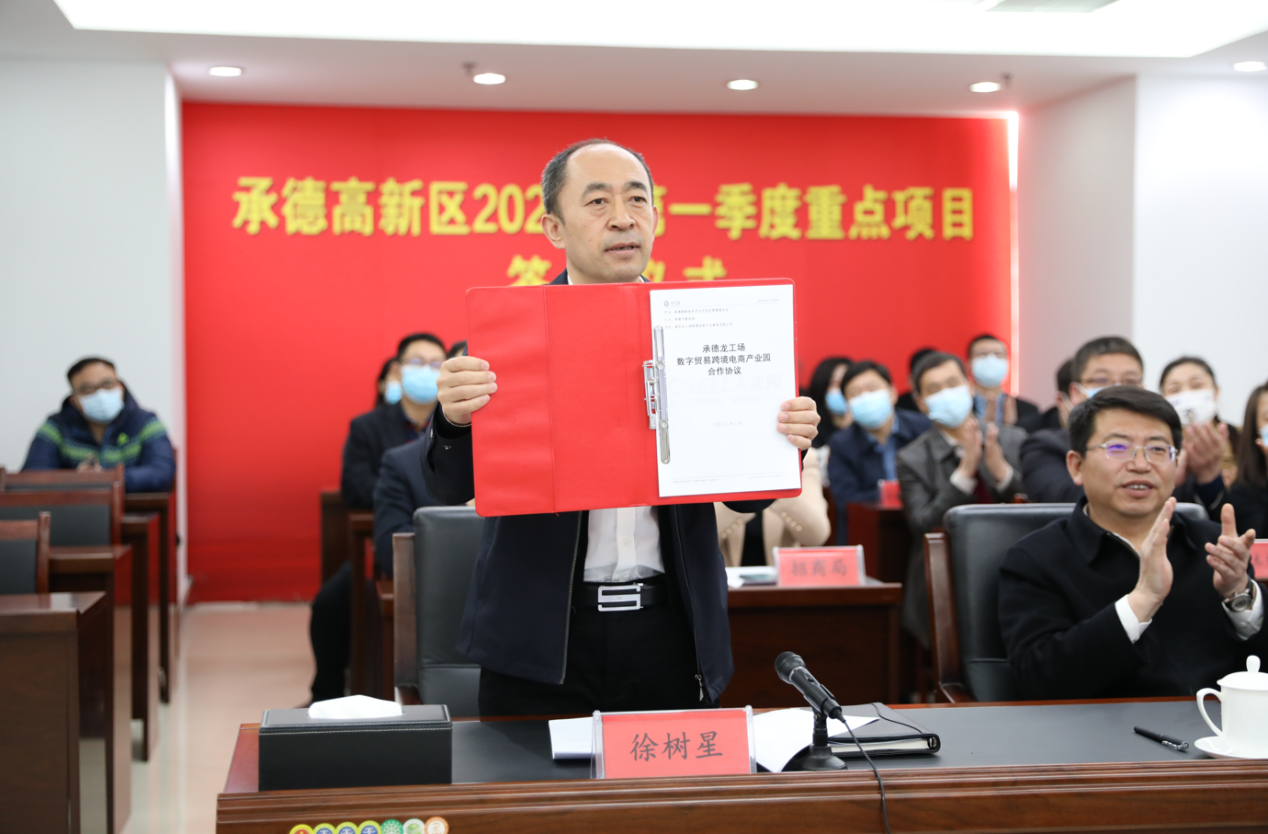 3月23日,承德高新区2022年第一季度重点项目云签约活动正式举办。承德市投资促进局、商务局局长桑爱民、高新区工委书记、管委会主任孙潇、高新区工委委员、管委会副主任徐树星等政府领导、以及包括大龙网集团在内的企业代表参加了线上签约活动。随着双方就承德龙工场数字贸易跨境电商产业园(以下简称承德龙工场)落地签署协议,不仅大龙网集团以数字贸易赋能产业的版图实现扩充,承德市高新区绿色发展、创新发展、高质量发展也迎来关键助力。