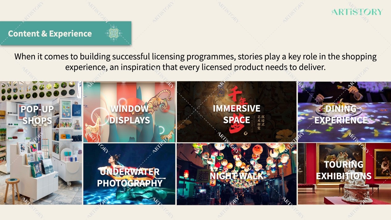 成功的授权项目离不开创新叙事。艺述事与国际品牌obode和uin的合作案例,使观众看到博物馆内拍摄、幕后采访等合作形式,也看到了产品背后丰富的艺术故事与消费者之间的互动。而艺述事支持的创新授权形式远不止于此。数字虚拟项目、直播、纪录片、与品牌合作创建互动式橱窗、快闪店、沉浸式展览、主题活动以及VIP旅游定制等等均在艺述事的全球业务范畴内。艺述事打造“超级组合”领先商业模式,旨在突破IP授权合作的传统业态,全面赋能品牌升级体验。