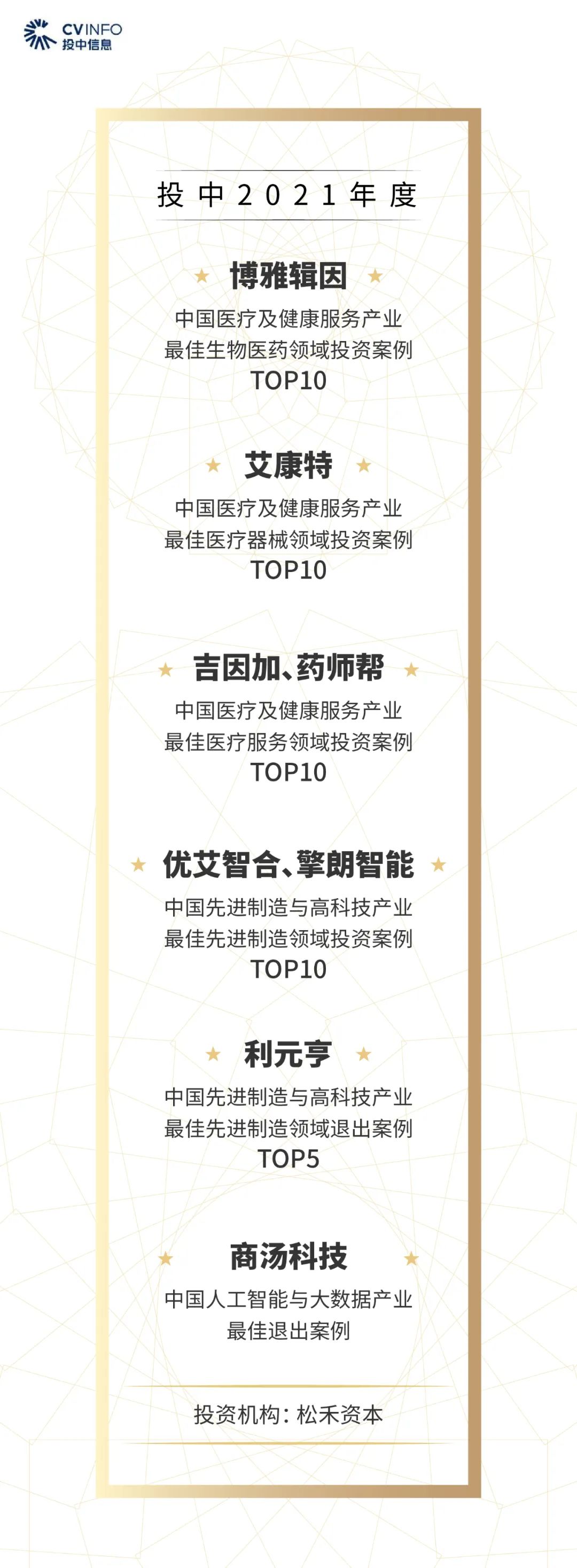 松禾资本及投资企业荣膺2021“投中榜”十大奖项