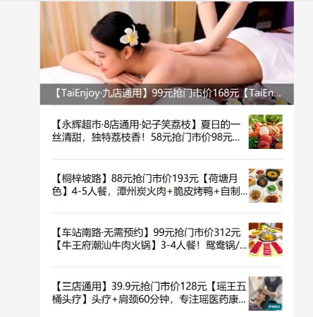 笔者有幸,抢到过一个泰式古法按摩的套餐,原价两百多的产品,“千千惠生活”里面只需要99.彼时笔者还不甚在意,以为只是一个小小的团购平台,总不可能撬动美团的位置。并且这么些年来,某微公众号里面,各种做本地生活服务的账号,并未见过几个出圈的。