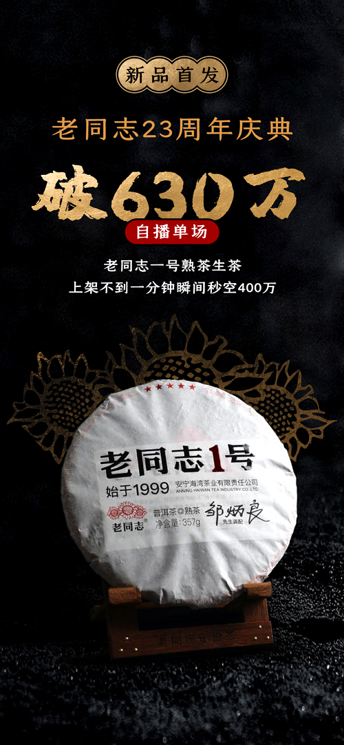 借助抖音电商珠宝潮奢行业的茶客厅尖货站实现单品打爆的品牌并不止陈升号。知名普洱茶品牌老同志,更是选择将品牌的23周年纪念庆典搬上直播间,将新品发布会和双11活动结合到一起,一边讲述品牌故事,一边开启带货。