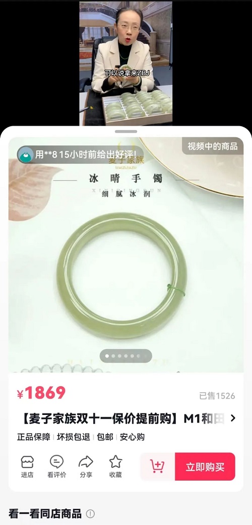 无独有偶,翡翠玉石头部商家麦子家族也通过短视频锚点引流抖音商城,成功实现了内容场到中心场的联动。
