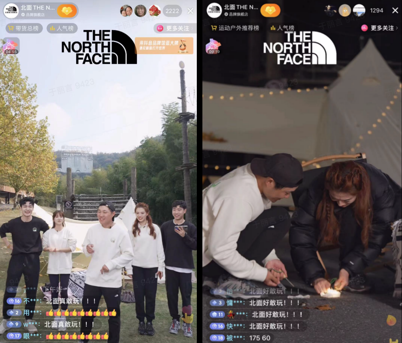 今年抖音双11好物节大促期间,运动服饰品牌北面还进行了一系列符合品牌调性的「户外直播」及系列短视频,其内容包括主播极限挑战运动、户外生存基础知识科普和露营知识科普。