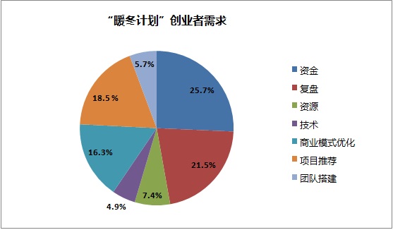 在本次2700多名“暖冬计划”创业者中,有21.5%的创业者表示希望能够通过星河互联“复盘方法论”帮助他们走出失败的阴影;对于还在坚持的创业项目,也希望能够通过专业的创业辅导帮助他们渡过难关。