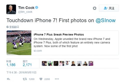 9月12日消息,据国外媒体报道,iPhone7和iPhone7 Plus在上周三已发布,今天苹果公司CEO蒂姆·库克(Tim Cook)在社交网络Twitter上分享了一组用iPhone 7 Pl
