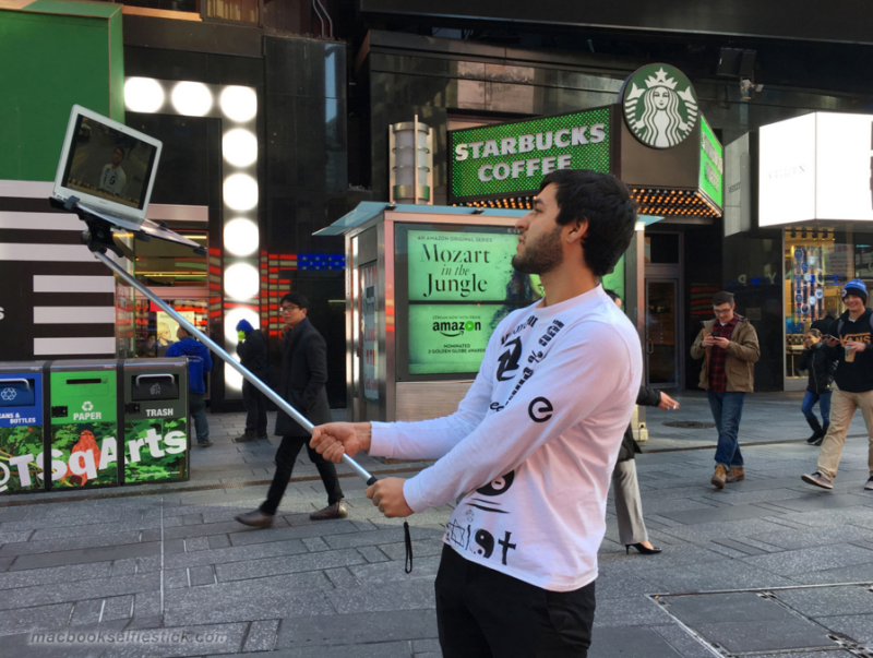 如果你觉得在公共场合举着 iPad 拍照是件难为情的事,那 MacBook 自拍杆一定让你无法想象。正如名字所示,这是一款托得起 MacBook 的自拍杆。 这种自拍杆非常坚固耐用,足够承受