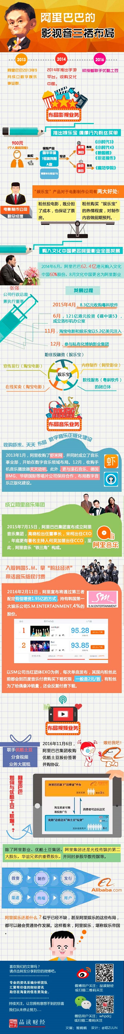 近期阿里入股韩国sm引起市场一片哗然,阿里巴巴2013年9月成立数字娱乐事业群,文化娱乐板块是从头做起。翻到2014年,推出手游平台,收购文化中国,再联手优酷土豆,手法看似散乱无章,却步步掐紧文化