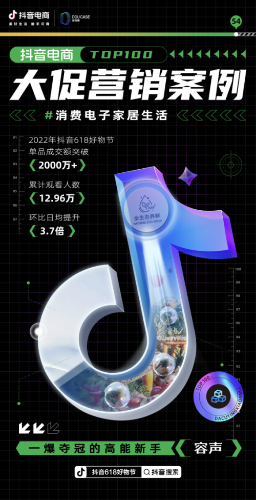 日前,抖音电商携手十大行业百余个优秀商家、达人,针对“618好物节”,推出了#抖音电商Top100大促营销案例#。容声冰箱凭借“聚焦做爆款”的思路,以用户需求为主导,以离子净味501冰箱为主打,一