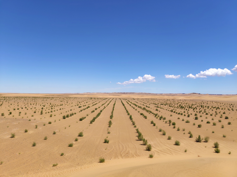 6月17日是“世界防治荒漠化和干旱日”,在内蒙古自治区阿拉善盟的沙漠边缘,每隔3米左右,就栽种着一棵10-30厘米高度不等的梭梭树。这是容声冰箱代表消费者种下的梭梭林,守护着沙漠“天路”的安全畅通