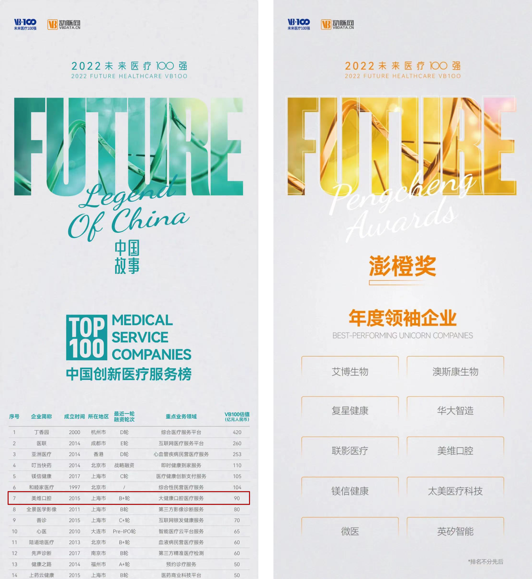 2022年6月14日—18日,以“中国故事”为主题的第六届未来医疗100强大会盛大开幕。随着2021-2022未来医疗100强各项榜单陆续揭晓,美维口腔医疗集团凭借其“DSO”赋能模式的深化发展及
