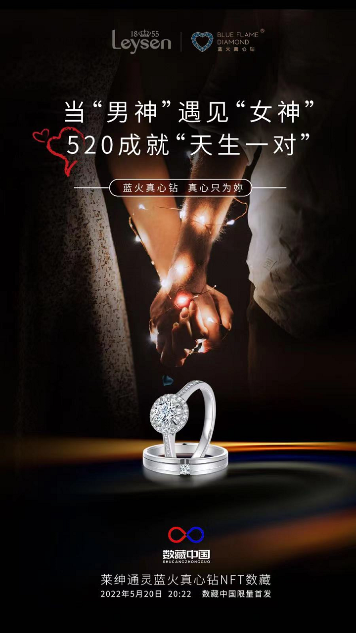 2022年5月20日,比利时王室珠宝供应商莱绅通灵将首次发布品牌蓝火真心钻NFT数字藏品。作为全球首款由高端珠宝品牌授权发行的数字对戒,莱绅通灵蓝火真心钻NFT数字藏品完美诠释了爱情的浪漫与忠贞,