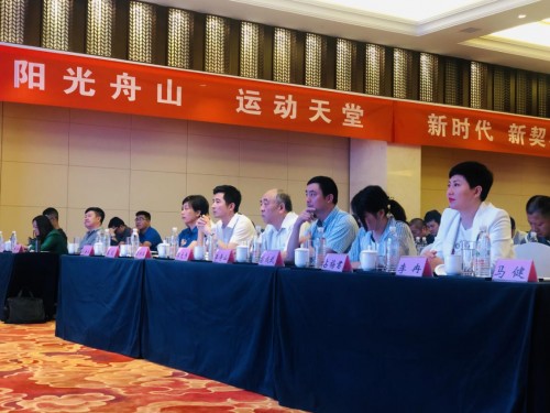 庆祝国庆,礼献祖国。 9月20日,以“新时代 新契机 新发展”为主题的2019舟山“海岛体育+”发展论坛在舟山普陀开元大酒店顺利闭幕。大会由浙江台99.6主持人万灵主持,舟山市政府副秘书长苗成