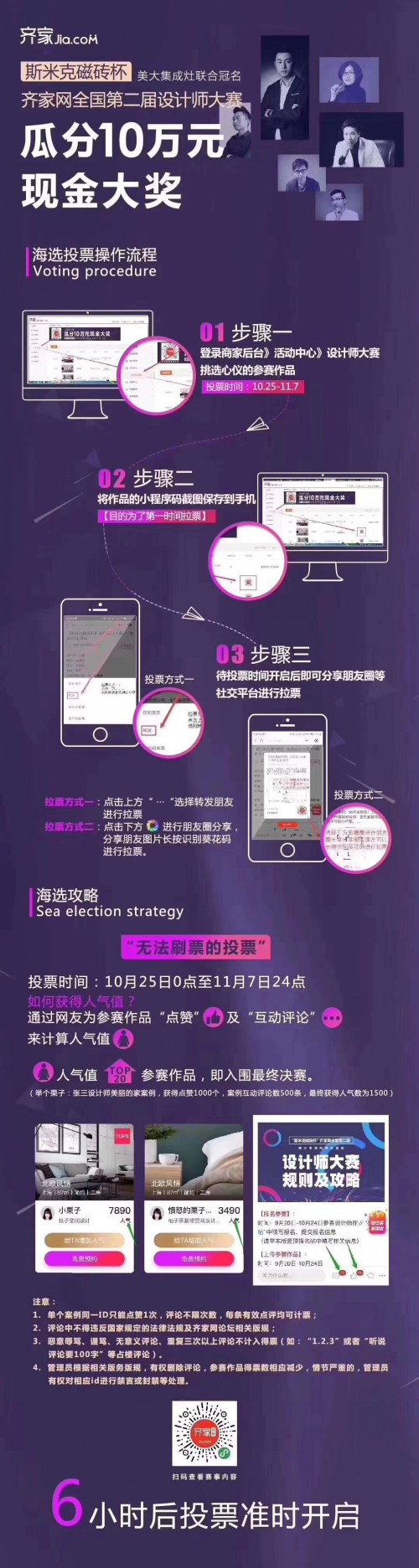 由美大集成灶联合冠名的“斯米克磁砖杯”齐家网全国第二届设计师大赛,海选阶段投票活动于10月25日正式开始。 自9月启动以来,齐家网第二届全国设计师大赛关注度高涨,截至25日,已有近万名来自全国